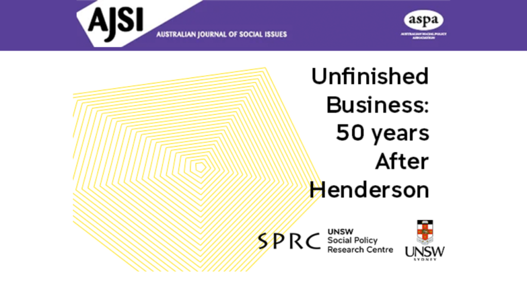 Unfinished Business: 50 Years After Henderson is an initiative of the Australian Social Policy Association and the Australian Journal of Social Issues, as part of Anti-Poverty Week.